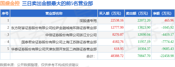 证券之星讯息,沪深交往所2024年12月18日公布的交往公开信息涌现,国盛金控(002670)因相连三个交昔时内,跌幅偏离值累计达到20%的证券登上龙虎榜。这次是近5个交昔时内第2次上榜。