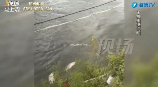 7月24日,林先生接到南靖梓里的父母回电,说家里的鱼塘被淹了,等他急急忙从厦门赶到南靖时,发现自家的大小两口鱼塘都被淹了,鱼塘水面上,照旧有着不少死鱼。